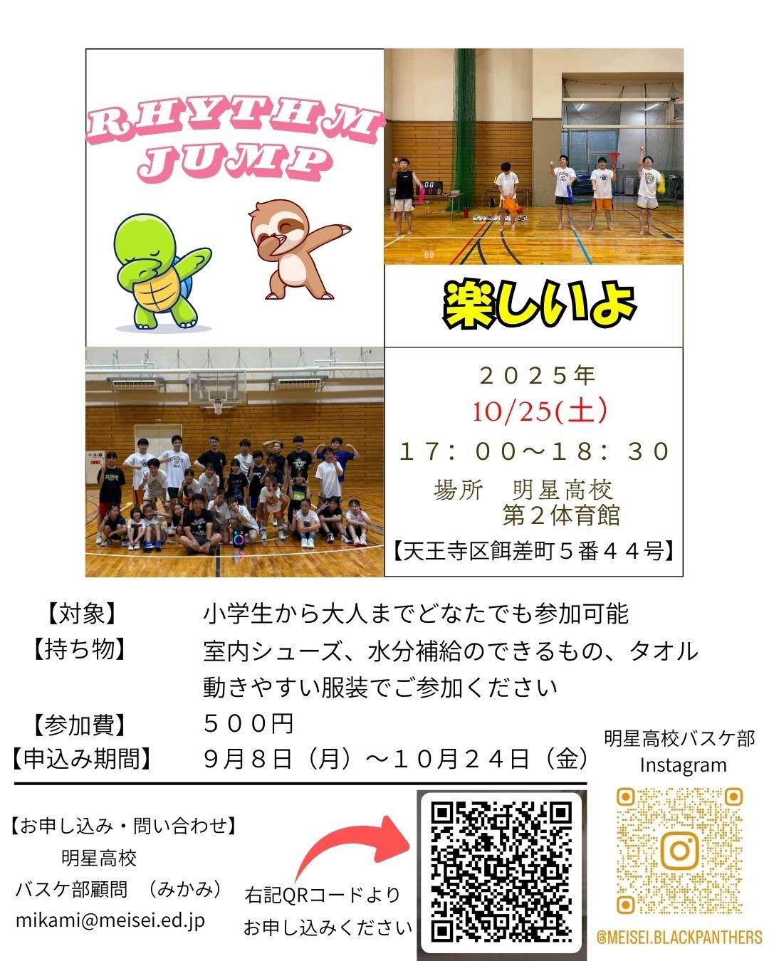 お問合せ先: バスケットボール部顧問 三上