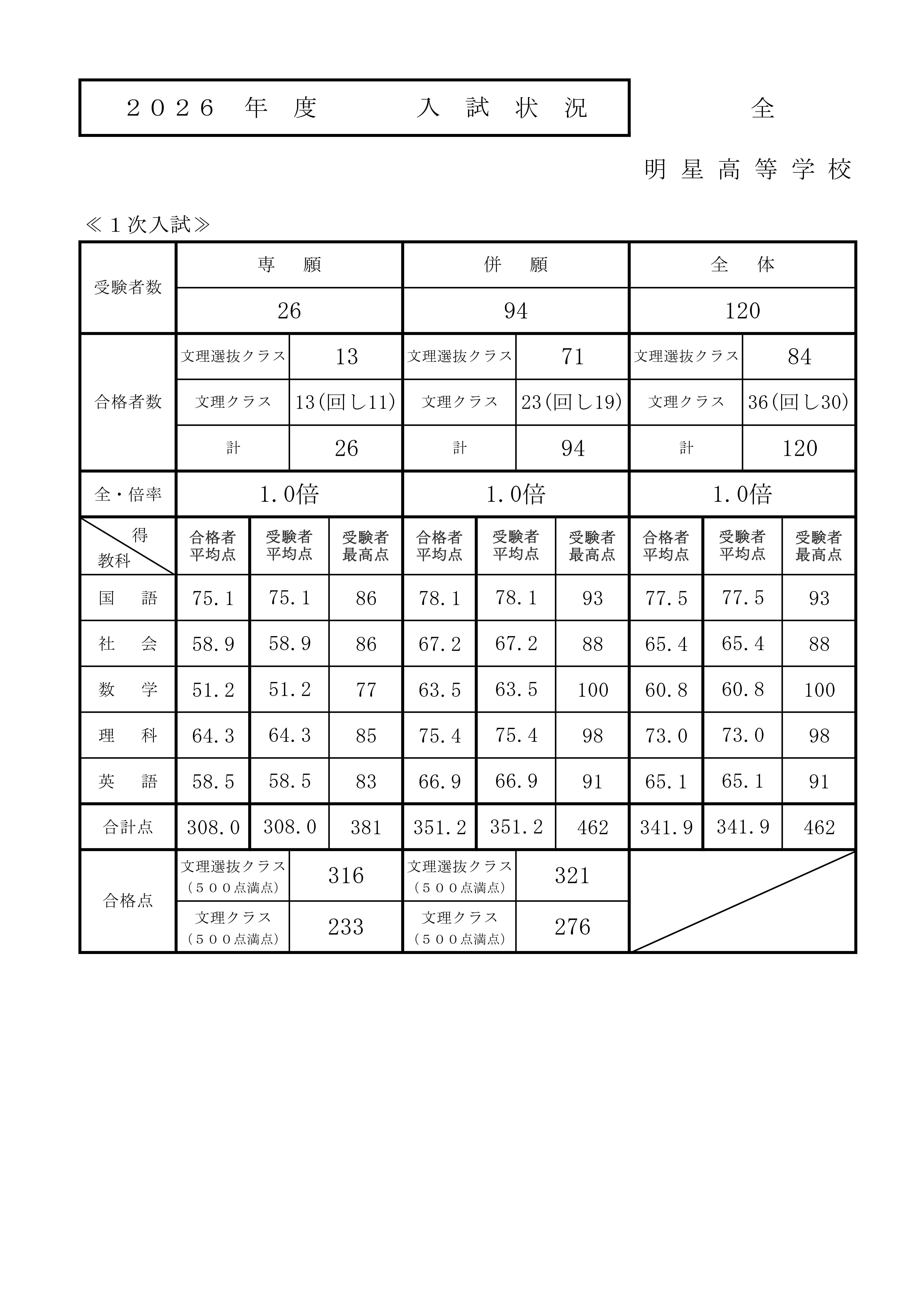 2026年度 高等学校入学試験 実施結果【1次入試】